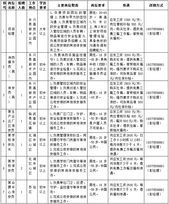3.联系地址:郴州市北湖区人民东路35号保安服务大楼四楼人力资源部。