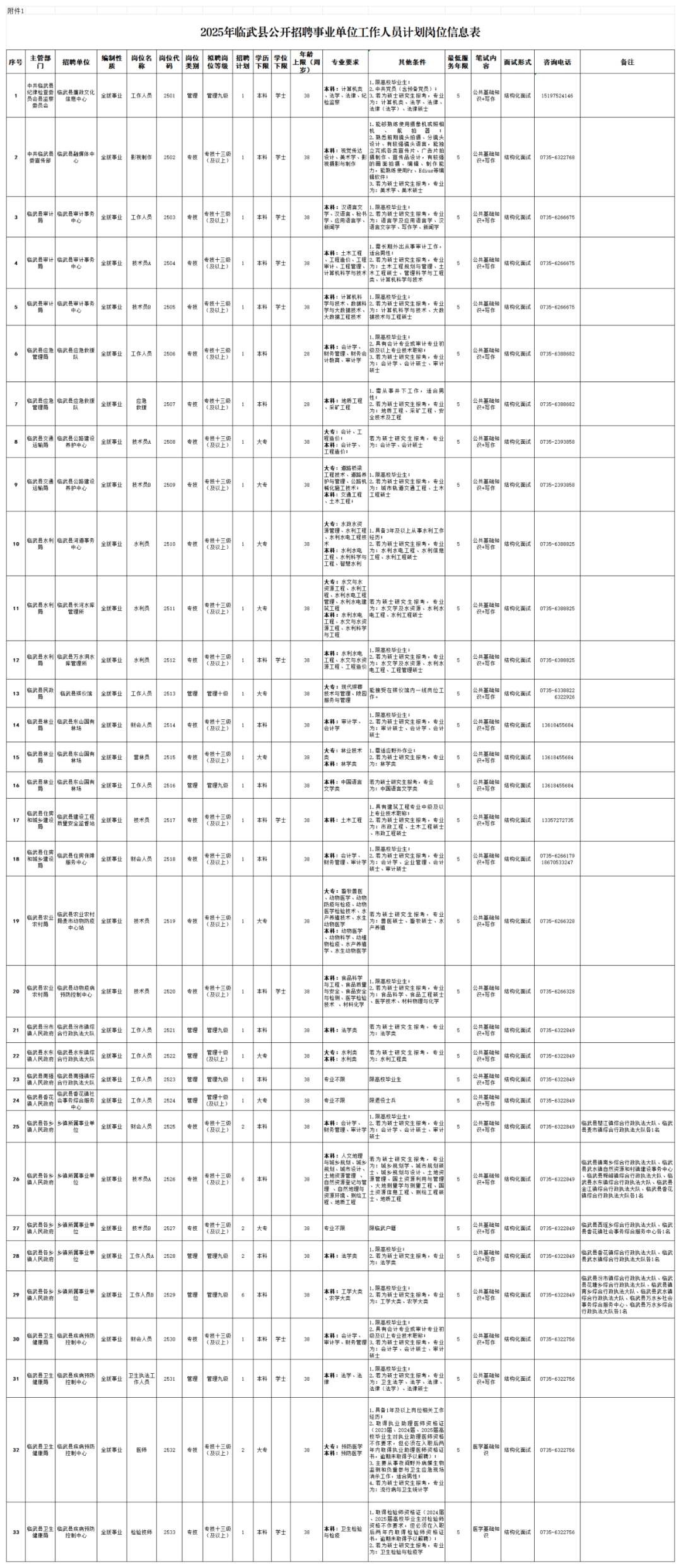 2.招聘条件咨询。招聘单位及其主管部门,咨询电话详见《2025年临武县事业单位公开招聘工作人员计划岗位信息表》(附件1)。