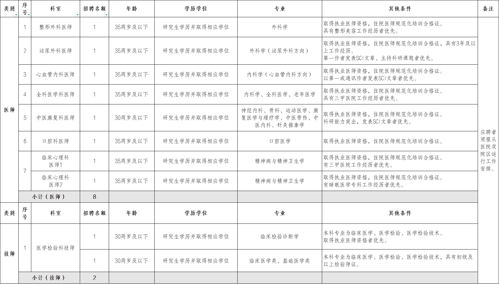 为适应渝中、科学城双院区运行,结合医院及科室发展需要,现面向社会广纳贤才,具体如下: