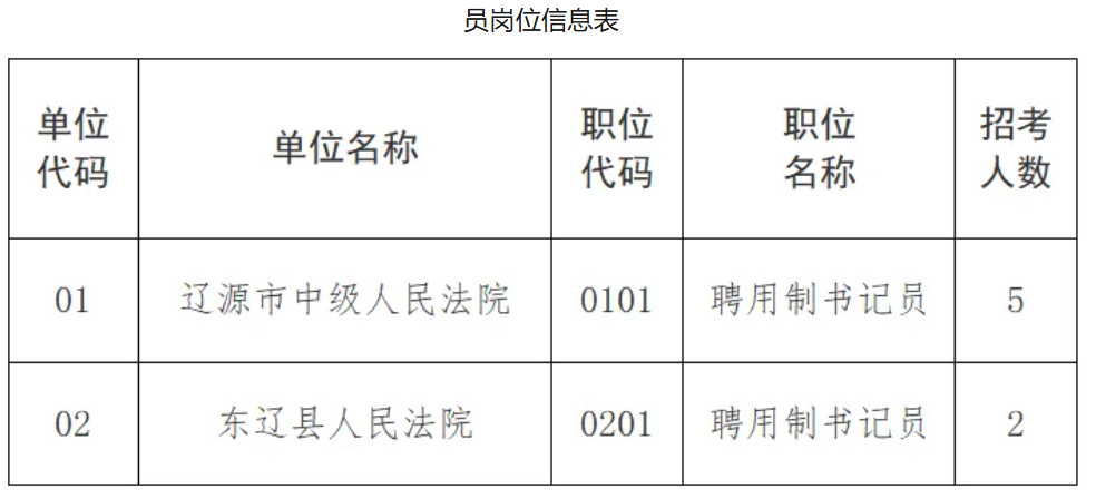 本次聘用制书记员招聘数量7名:市中院5名;东辽县法院2名。