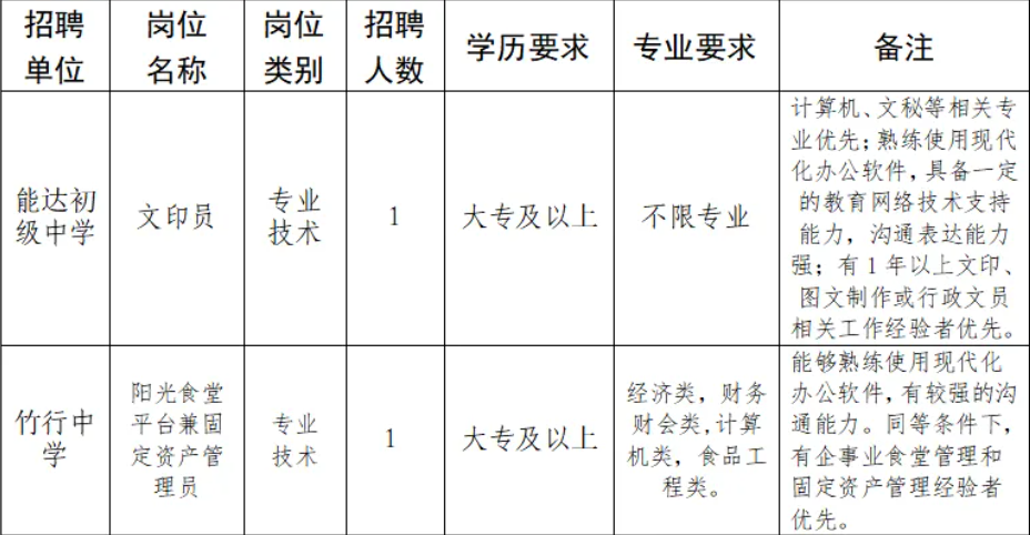 因工作需要,南通市能达初级中学和南通市竹行中学面向社会公开招聘政府购买服务岗位工作人员,现将有关事项公告如下: