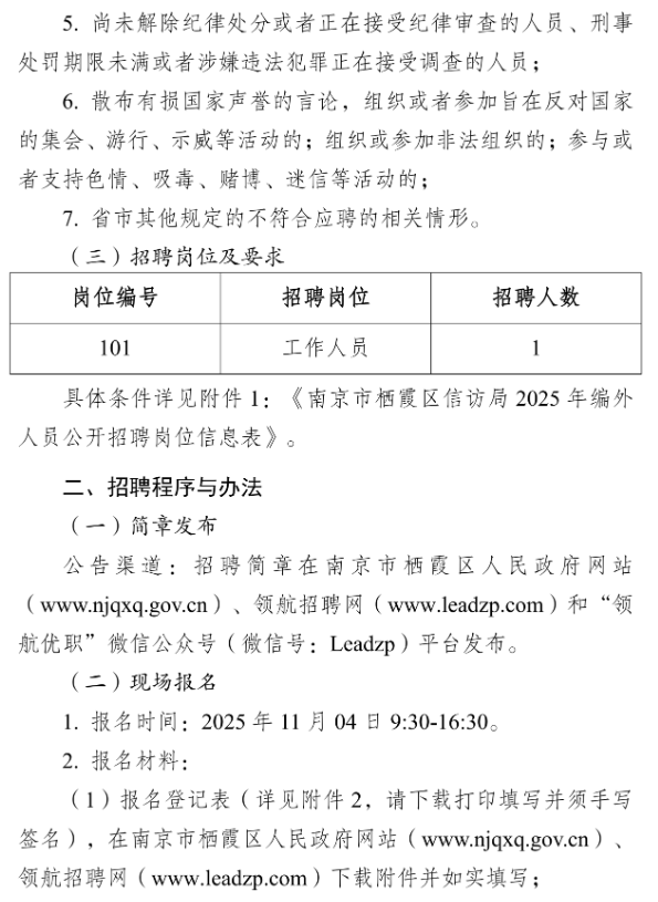 附件1:南京市栖霞区信访局2025年编外人员公开招聘岗位信息表.pdf