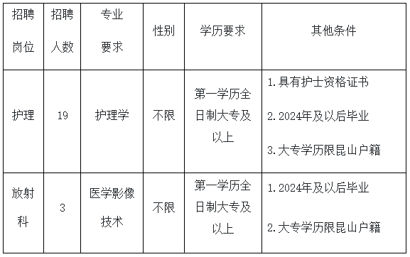 因工作需要,昆山市人力资源派遣服务有限公司受昆山市中医医院委托,面向社会招聘派遣合同制卫生专业技术人员,招聘条件详见下表: