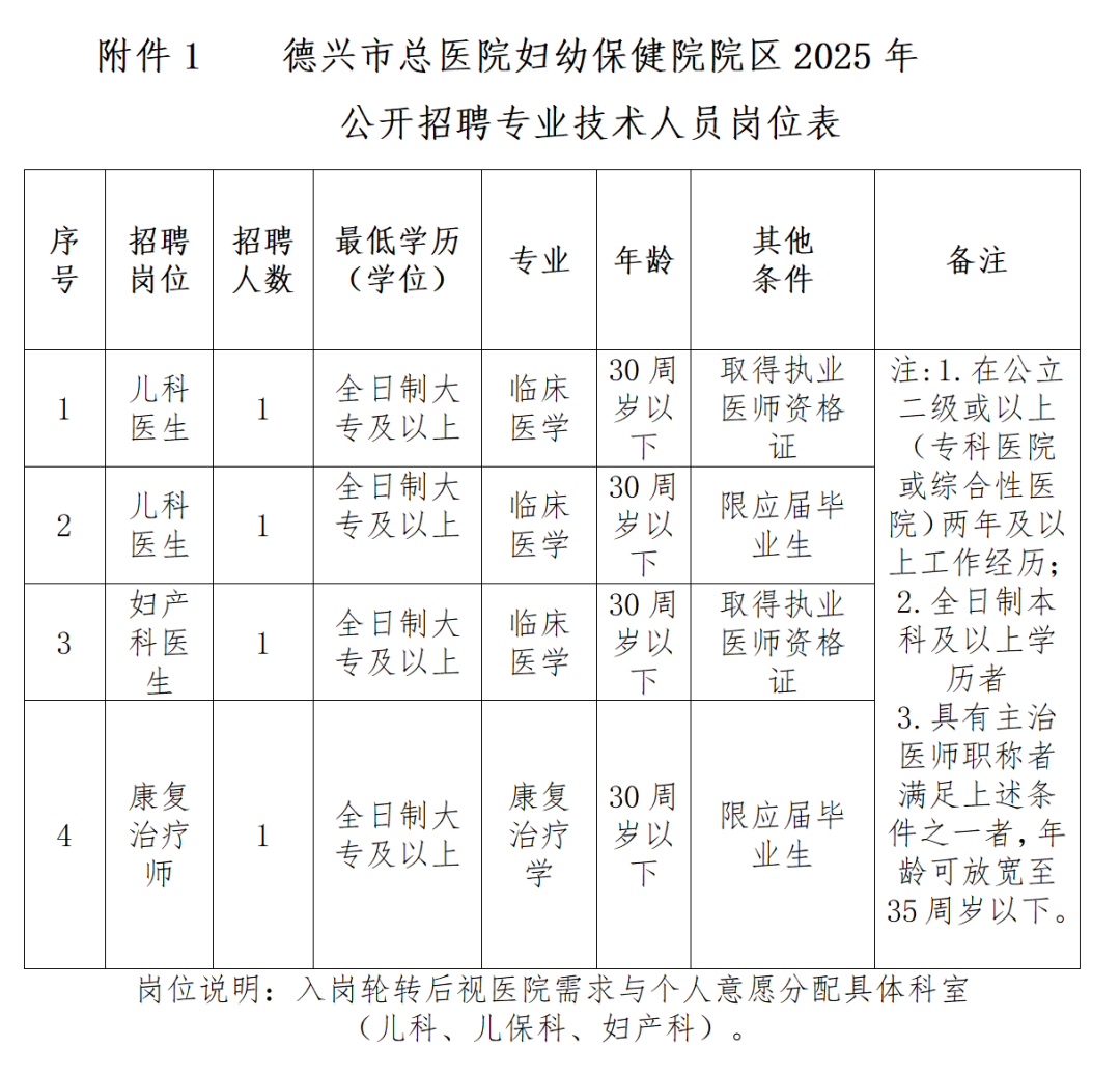 德兴市总医院妇幼保健院院区为满足医院临床工作人力资源需求,保证医院工作的顺利开展,全面提高医院的医疗服务质量,现将面向社会公开招聘合同制专业技术人员。具体招聘工作方案如下: