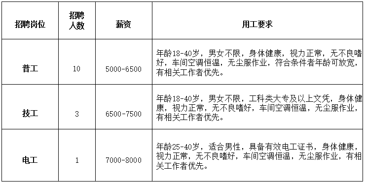 普工岗位投递