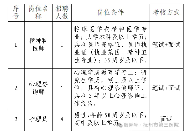 因业务发展需要,抚州市第三医院拟面向社会公开招聘6名编制外专业技术人员,现将有关事项公告如下: