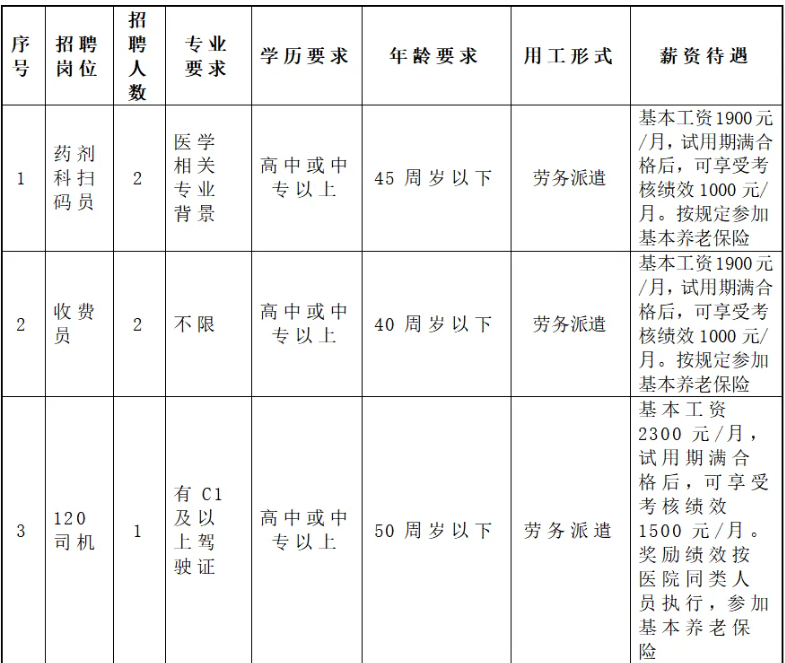 7.本年度医院以上相同岗位如需招聘,可由劳务派遣公司根据本次招聘面试成绩高低结合报考人员意愿以此直接派遣至用工单位。