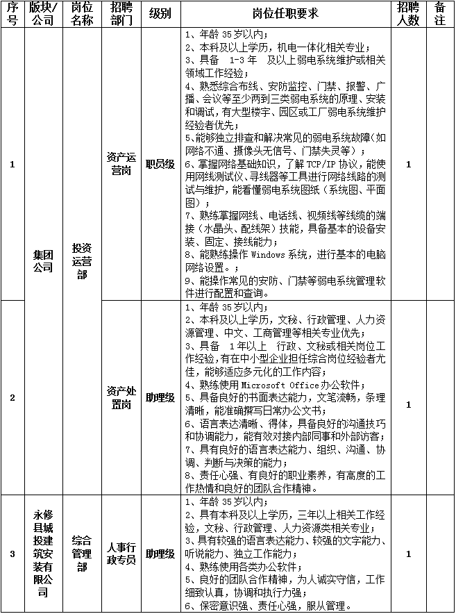 (3)报考人员需认真填写《江西赣江新区永修投资集团有限公司公开招聘报名表》(附件中表1及表2),连同报名附件打包压缩文件发送至电子邮箱:yxrc@gjhyrl.com,邮件主题标注“永投集团+部门(公司)+应聘岗位+姓名+联系电话”。