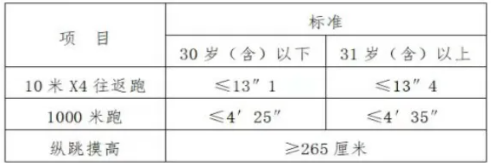 体能测评各项目标准如下:其中年龄计算时间截止到2025年12月17日。