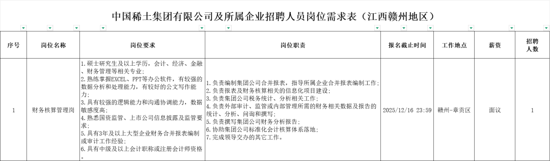 集团公司总部岗位面向中国稀土集团系统内外公开招聘;直管企业岗位面向社会公开招聘。