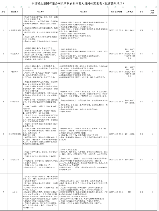 中国稀土集团有限公司及所属企业招聘44人公告(江西赣州有岗)