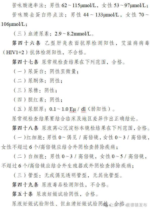 在面试合格的招聘对象中,依据战斗员、驾驶员和接警调度员总成绩从高到低排序,按照各岗位类别人数1:2的比例确定参加面试名单。在指定的市级以上综合性医院进行,参照《应征公民体格检查标准》(陆勤人员)执行,不合格的不予招聘。招聘对象对体格检查结果有疑问、申请复检的,经景德镇市专职招聘专项工作办公室和体检机构均认定有复检必要的,可以进行一次复检,体格检查结果以复检结论为准;对可以通过服用药物或其他治疗手段影响检查结果的项目不予复检。