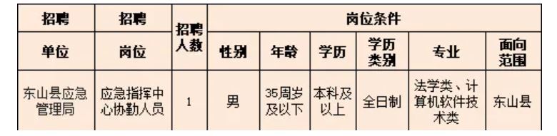 1.从已参加“2025年5月漳州市事业单位公开考试”报考东山县应急管理综合执法大队岗位,法学类、计算机软件技术类专业的东山县户籍男性人员,笔试成绩(行政职业能力测验+申论)达到合格线以上且符合以下条件未被聘用的考生;
