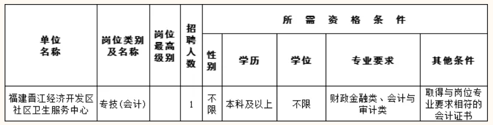 ▲福建晋江经济开发区社区卫生服务中心2025年度编外工作人员报名表