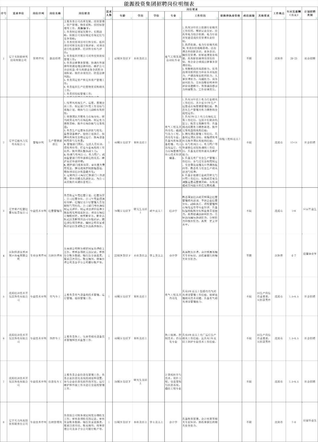 为满足业务发展需要,能源投资集团拟面向社会公开招聘管理序列岗位2名,专业技术序列岗位员工7名,技能操作序列岗位员工4名(详见附件1)。