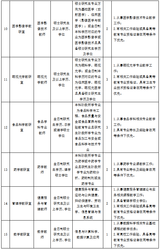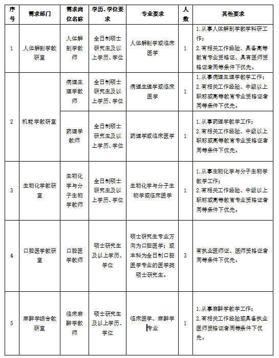 学院始终坚持以习近平新时代中国特色社会主义思想为指导,坚持“质量立校、人才强校、作风正校、依法治校”的办学理念。现有教学机构为七系两部,分别为医学系、口腔医学系、麻醉学系、护理学系、医学技术系、药学与食品科学系、健康管理学系、思想政治理论教研部和公共基础教研部共九个教学组织。设立医学、理学、管理学、工学4个学位授予门类,20个本科专业。因事业发展需要,现向社会公开招聘。