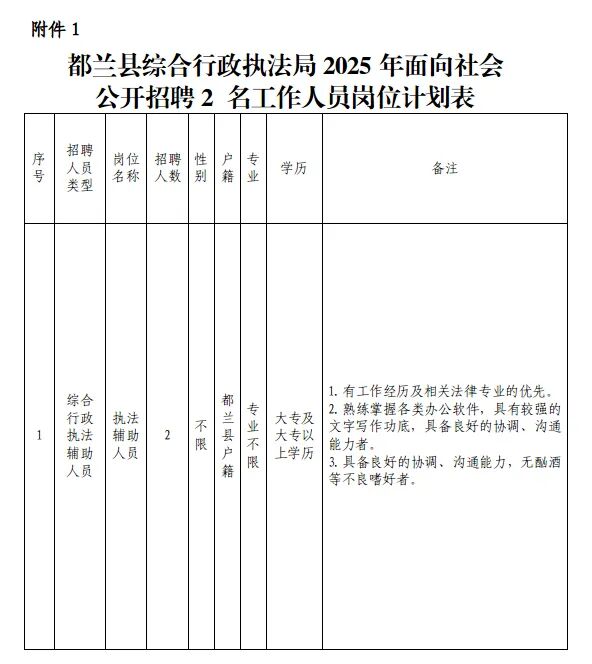 为进一步充实工作力量,满足都兰县综合行政执法局日常工作需要,根据工作实际,面向社会公开招聘临聘工作人员2人,现将有关事项公告如下: