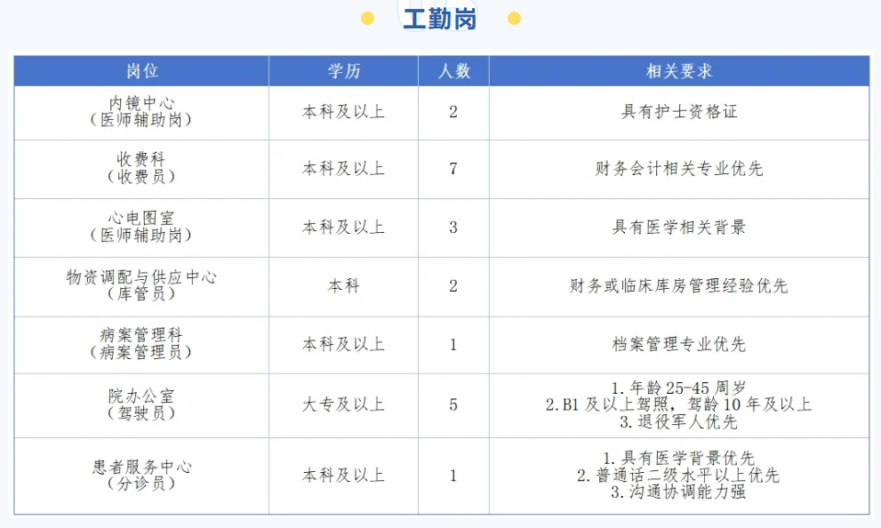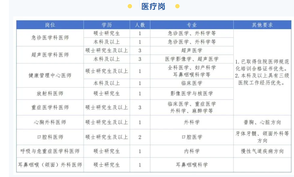 招聘岗位:医疗、护理、医技、研究、信息岗等
