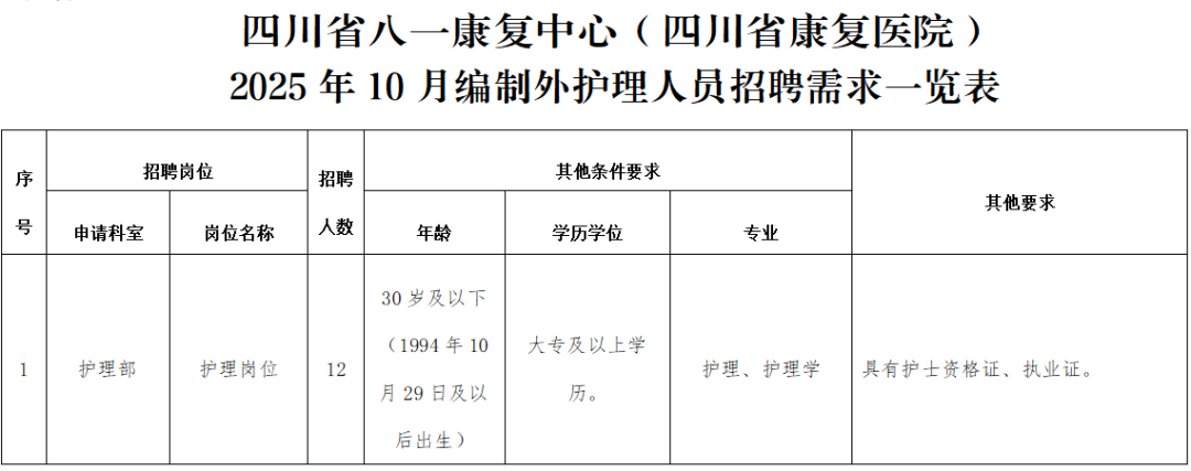 为满足医院临床工作需要,经医院研究,现将2025年10月公开招聘护理人员有关事宜公告如下: