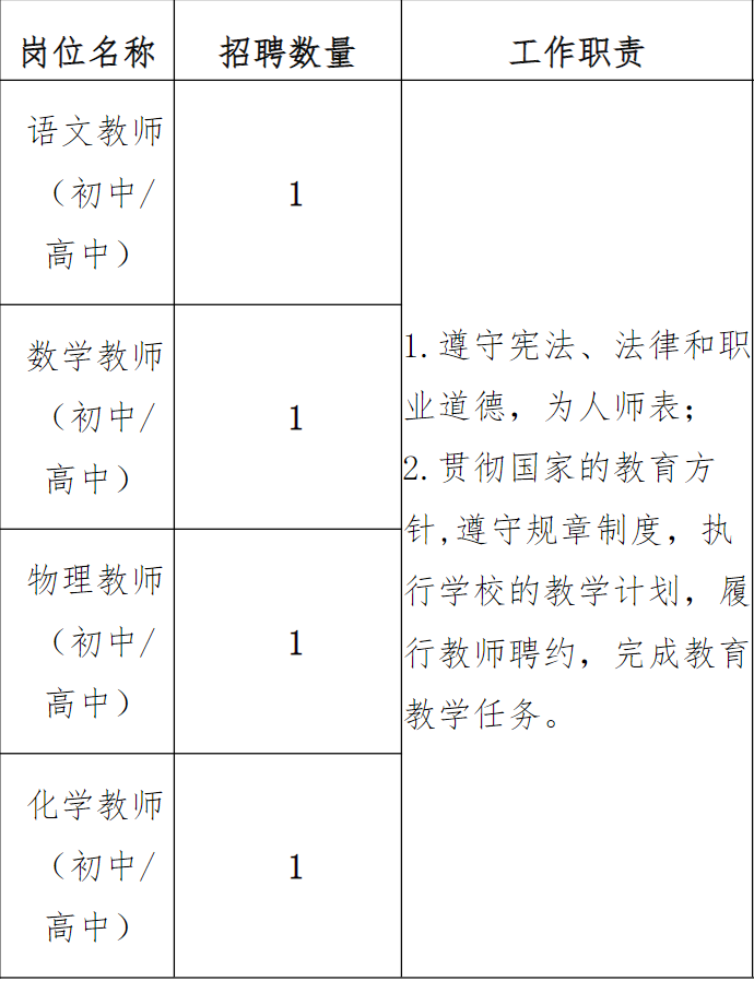 1.本科及以上学历,2025年毕业生、2026年应届毕业生或毕业后连续从事中学教学工作的往届毕业生(年龄可放宽到不超过32周岁);