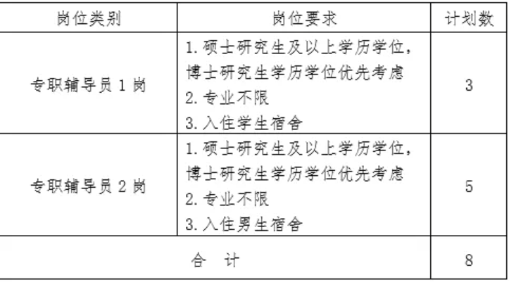 为建设政治可靠、富有活力、结构合理的辅导员队伍,现公开招聘事业编制专职辅导员8名。