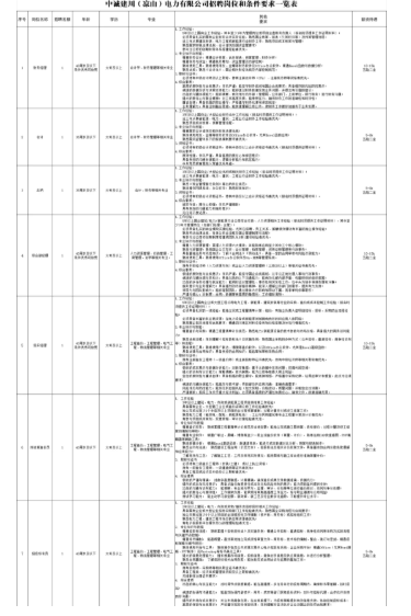 本次共招聘7名工作人员,具体岗位招聘条件见附件《中诚建川(凉山)电力有限公司招聘岗位和条件要求一览表》(以下简称《岗位表》)。