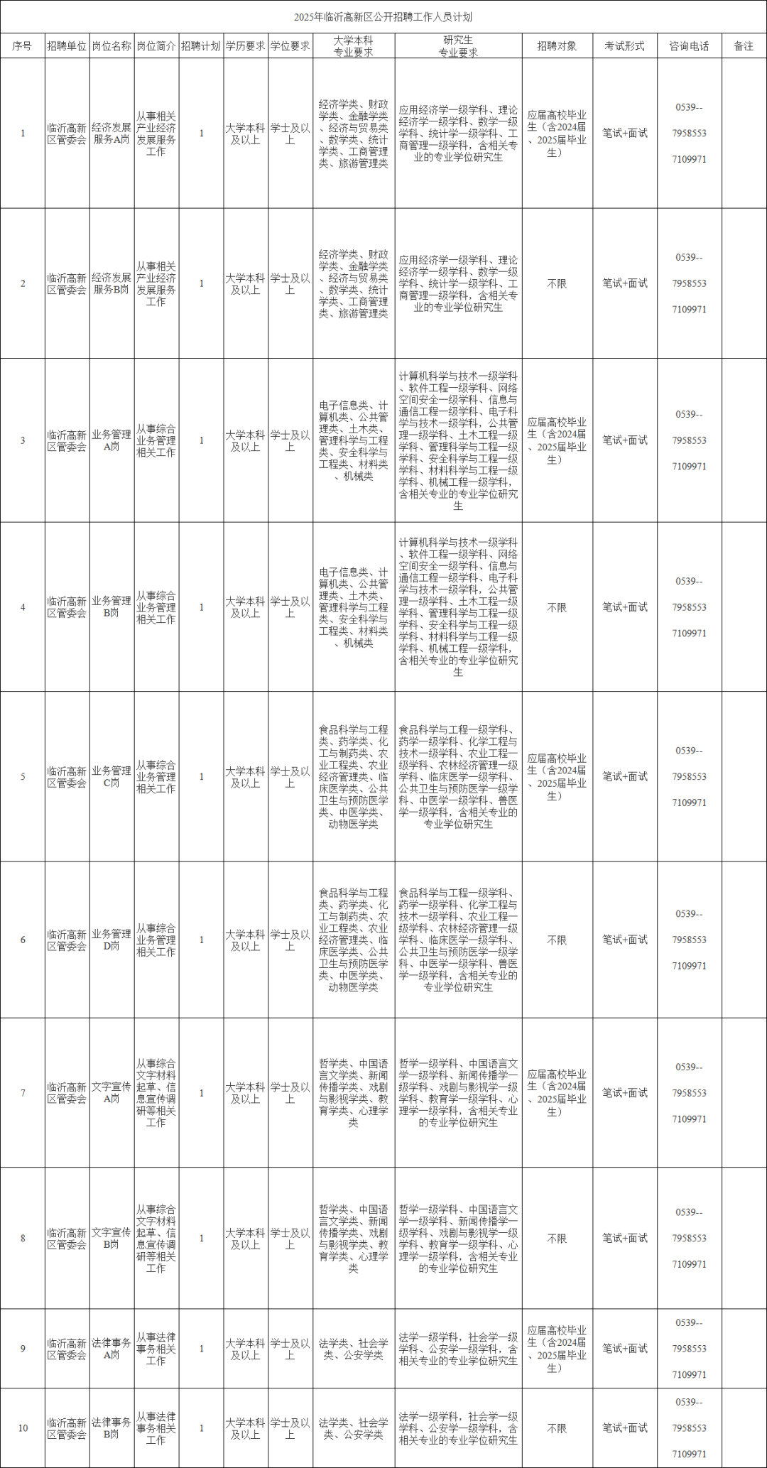 应聘人员对招聘岗位要求的专业、学历、学位、回避情形,以及其他资格条件需要咨询时,请直接与招聘单位联系。招聘单位的咨询电话可以通过《2025年临沂高新区公开招聘工作人员计划》(见附件)查询。