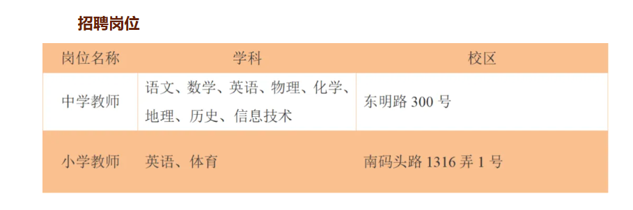 根据《上海市事业单位公开招聘人员办法》(沪人社规〔2019〕15号),结合学校发展需要,按照公开、平等、竞争、择优的原则,面向社会公开招聘中小学教师。