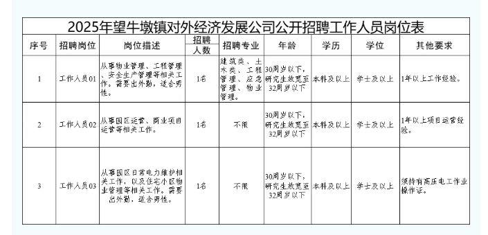根据工作需要,本公司现面向社会公开招聘工作人员3名。现将有关事项公告如下: