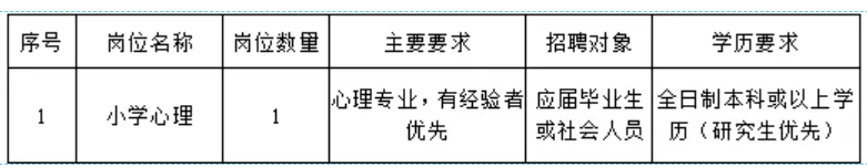 东莞市沙田镇第一小学成立于2000年9月,位于沙田镇立沙花园内。在校教职工104人,其中副高级教师7人,中级教师24人,市名校长工作室主持人1人,市学科带头人1人,市教学能手9人,镇学科带头人9人,镇兼职教研员4人。学校先后被评为全国青少年校园足球特色学校、广东省绿色学校、广东省语言文字规范化示范校、广东省中小学艺术教育学校、东莞市一级学校、东莞市第一批中小学劳动教育实践基地等。为满足学校的教育教学工作需要,根据学校的实际情况,我校计划面向社会公开招聘编制外教师,具体要求如下: