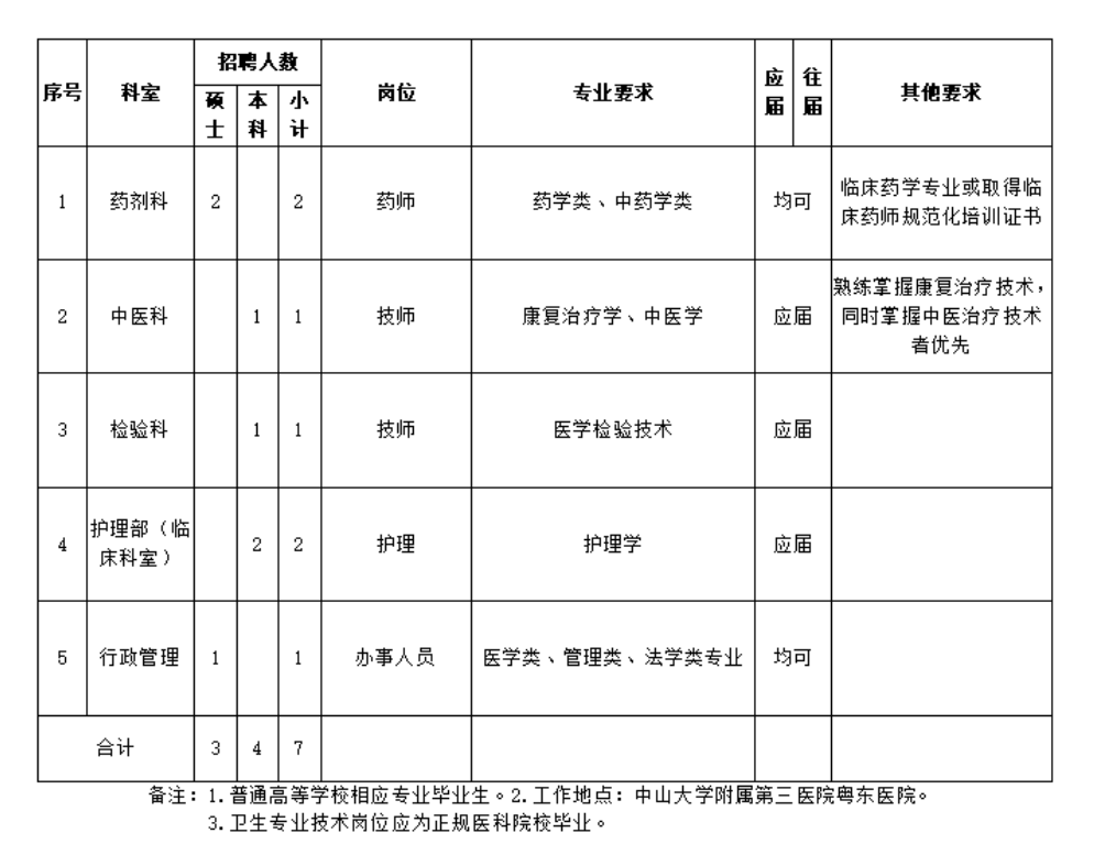 联系地址:广东省梅州市梅县区新县城公园北路中山大学附属第三医院粤东医院人事科