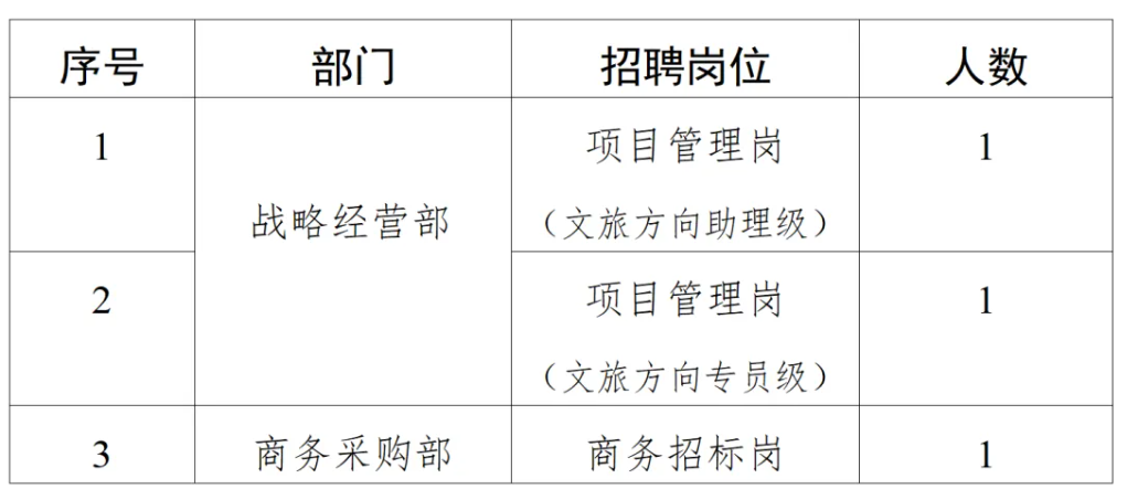 为满足津北文旅发展需求,特招聘劳务派遣制工作人员3人。