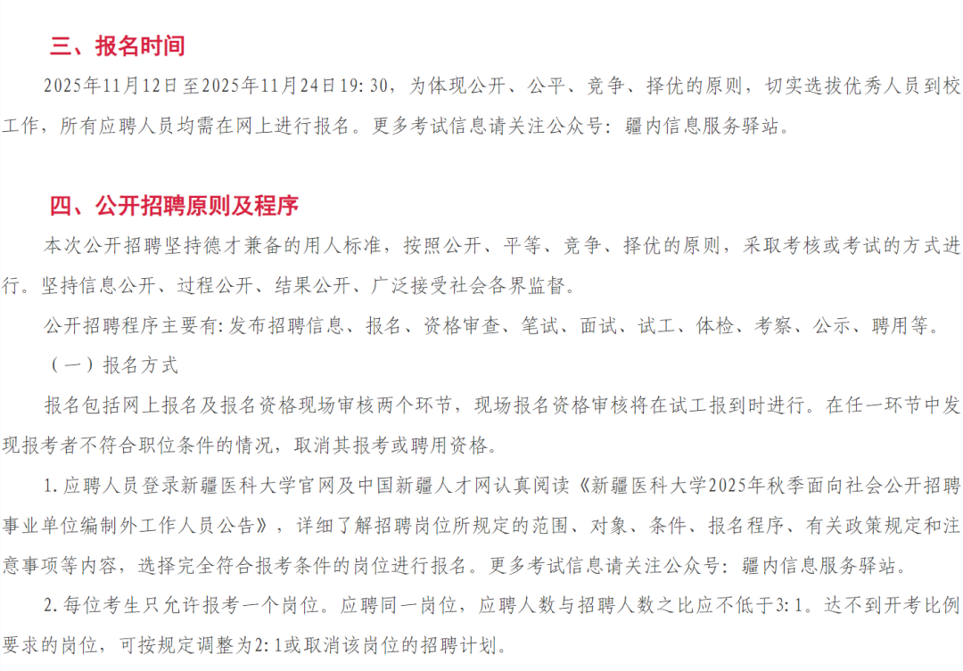 1.新疆医科大学2025年秋季面向社会公开招聘事业单位编制外工作人员公告
