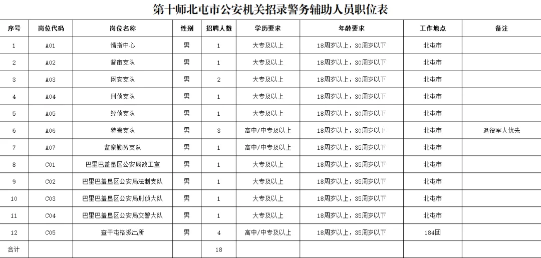 1.附件:第十师北屯市公安机关招录警务辅助人员岗位表