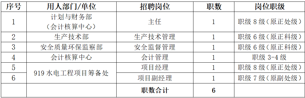 (一)公司本部招聘岗位及职数