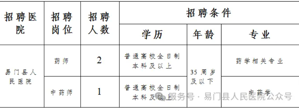 易门县紧密型医共体总医院因工作需要,面向社会公开招聘编制外药学专业工作人员3人,现将有关事项公告如下。