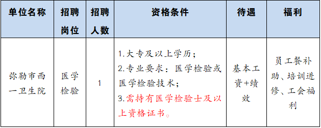 弥勒市紧密型市域医共体西一分院公开招聘合同制医学检验科医生的公告