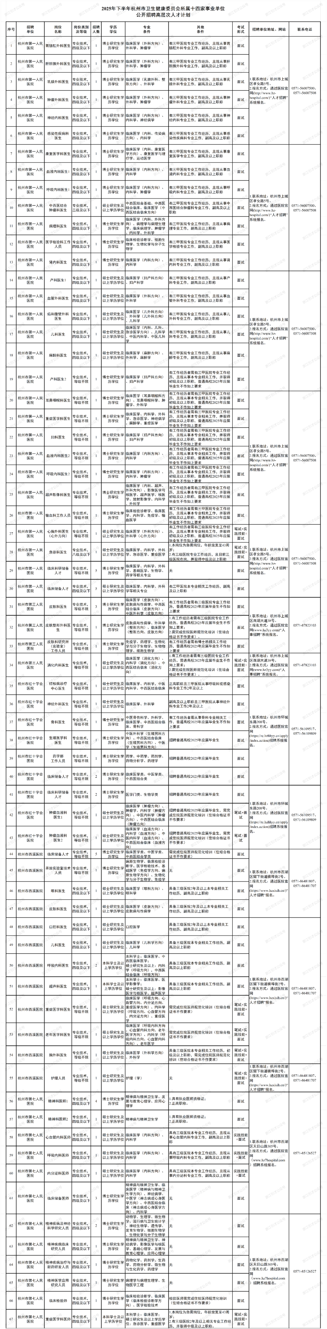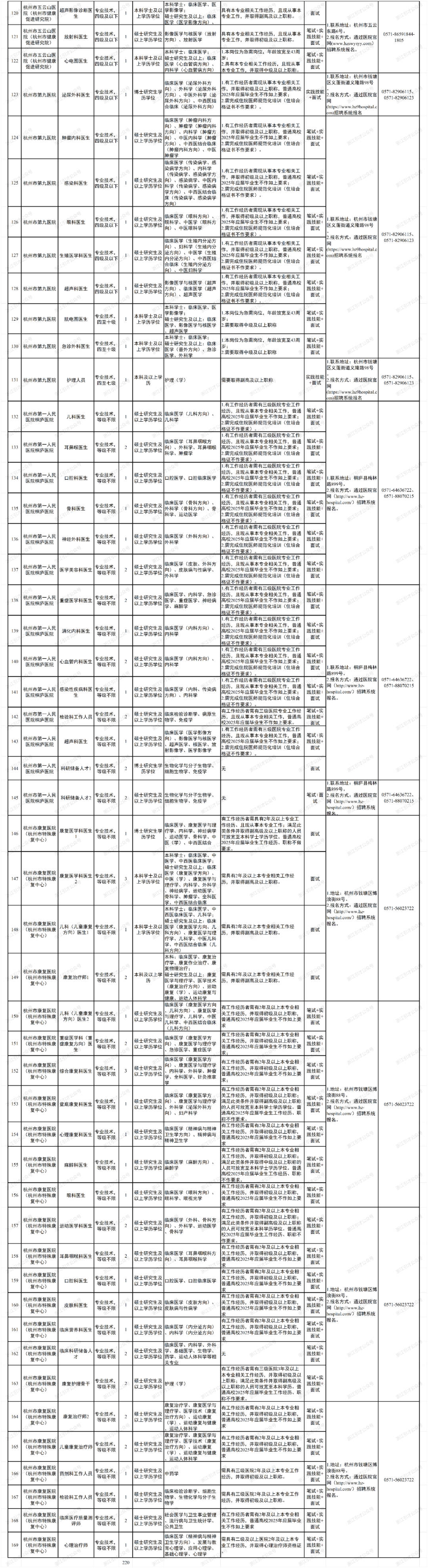 根据工作需要,杭州市卫生健康委员会所属杭州市第一人民医院、杭州市第三人民医院等14家财政适当补助事业单位决定面向社会公开招聘事业编制高层次人才220名。按照《中共中央组织部人力资源社会保障部关于进一步做好事业单位公开招聘工作的通知》(人社部发〔2024〕57号)、《杭州市事业单位公开招聘工作人员操作程序(试行)》(杭人社发〔2014〕380号)等文件规定,现将有关事项公告如下: