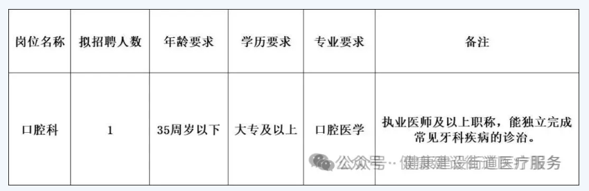 建设街道社区卫生服务中心招聘合同制口腔科医生1名的公告