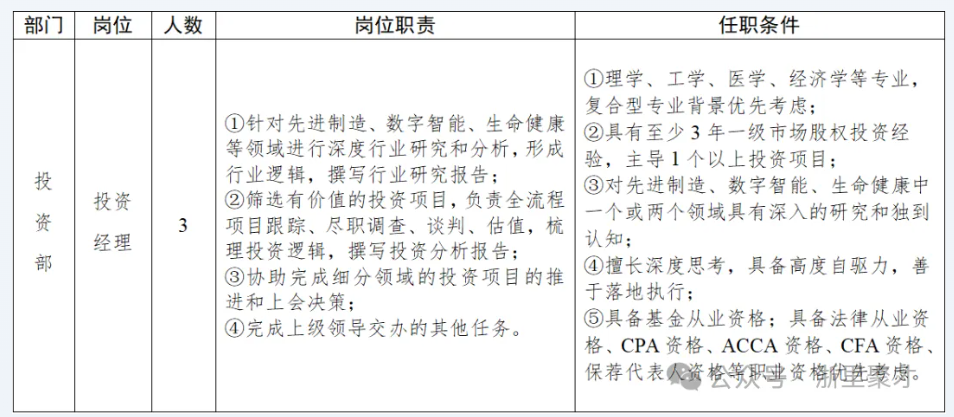 投资部投资经理3名。
