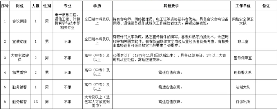 因工作需要,台州市公安局路桥分局决定面向社会公开招聘警务辅助人员(下称辅警)20名。现将相关事项公告如下: