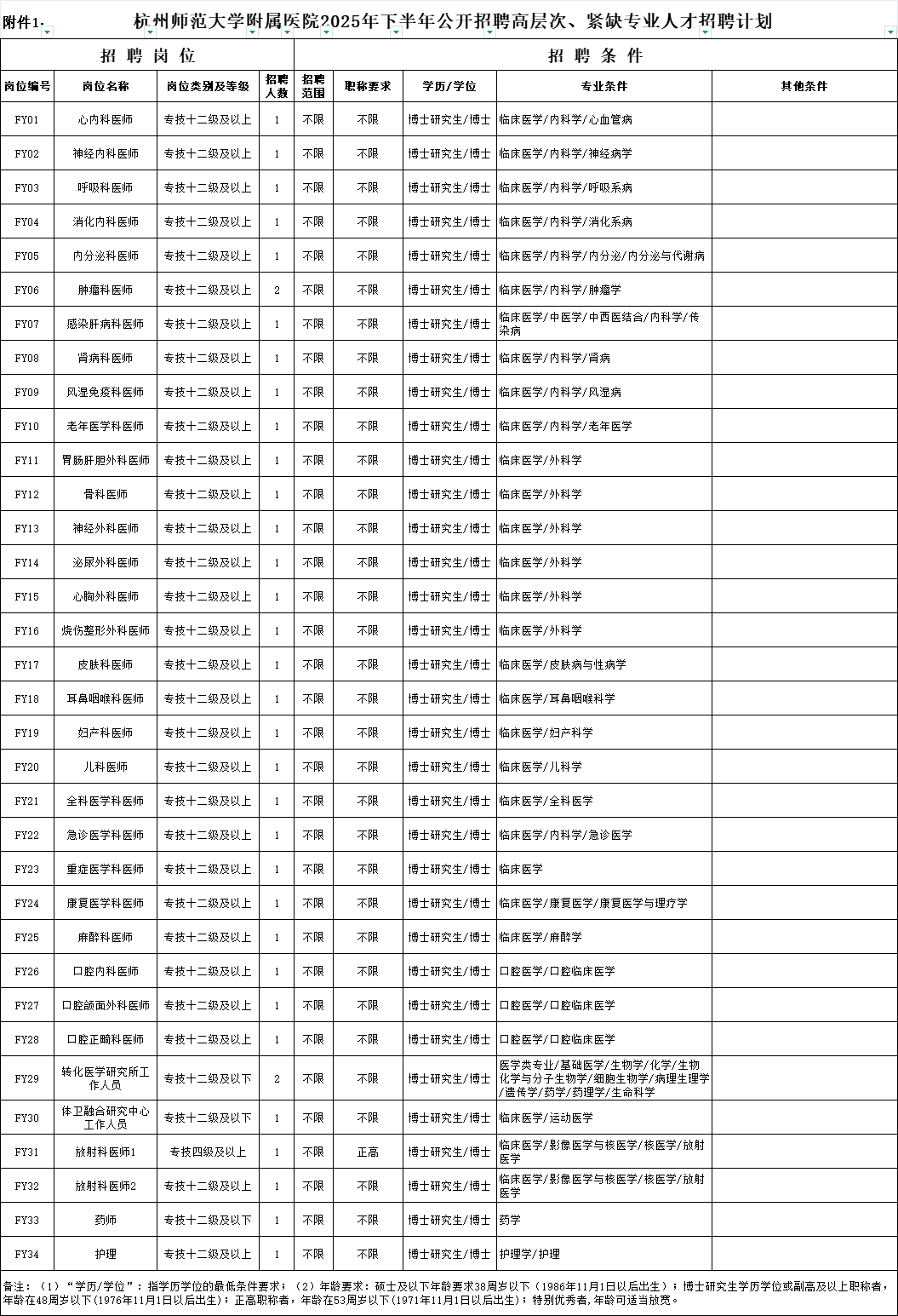 现根据2025年杭州师范大学附属医院上半年招聘情况,调整招聘岗位,2025年下半年公开招聘高层次、紧缺专业人才36名。具体见附件。