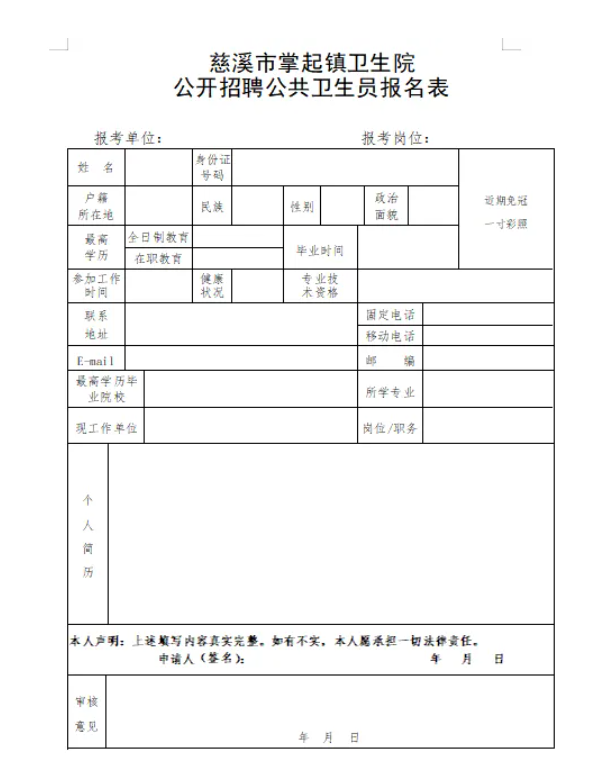 2、报名地点:慈溪市掌起镇卫生院(慈溪市掌起镇慈掌路460号)三楼党政综合办303。