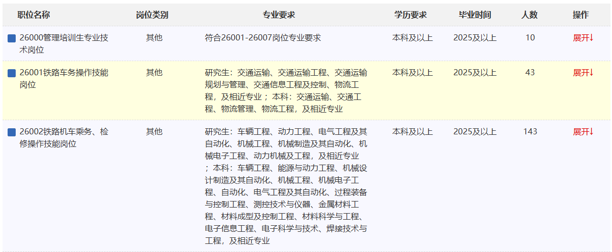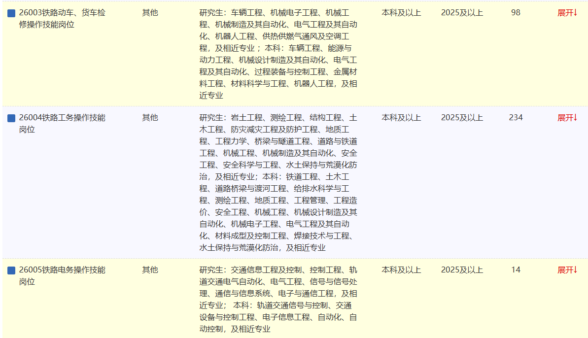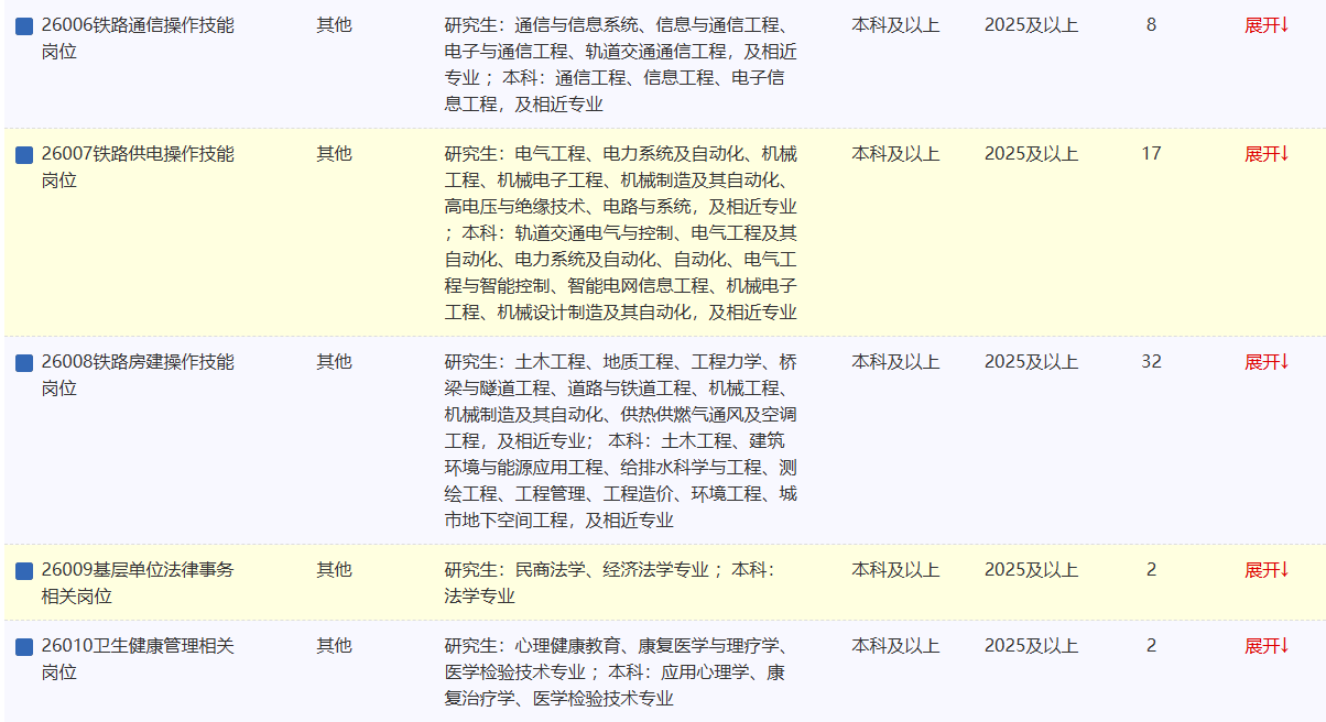 2.岗位代码26001-26008:要求在校期间所学专业方向为铁路专业方向或所学主要课程中包含铁路专业课程,相近专业高质量院校毕业生优先;