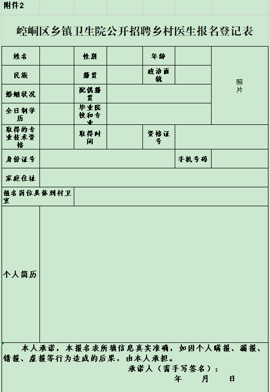 附件2-崆峒区乡镇卫生院公开招聘乡村医生报名登记表.xlsx