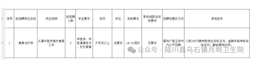 报名地点:陆川县乌石镇月垌卫生院五楼办公室。