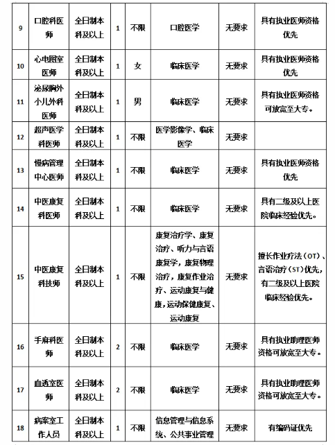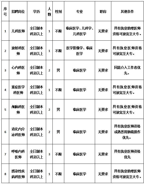 6.年龄18-35周岁,具有主治医师资格可放宽至45周岁。
