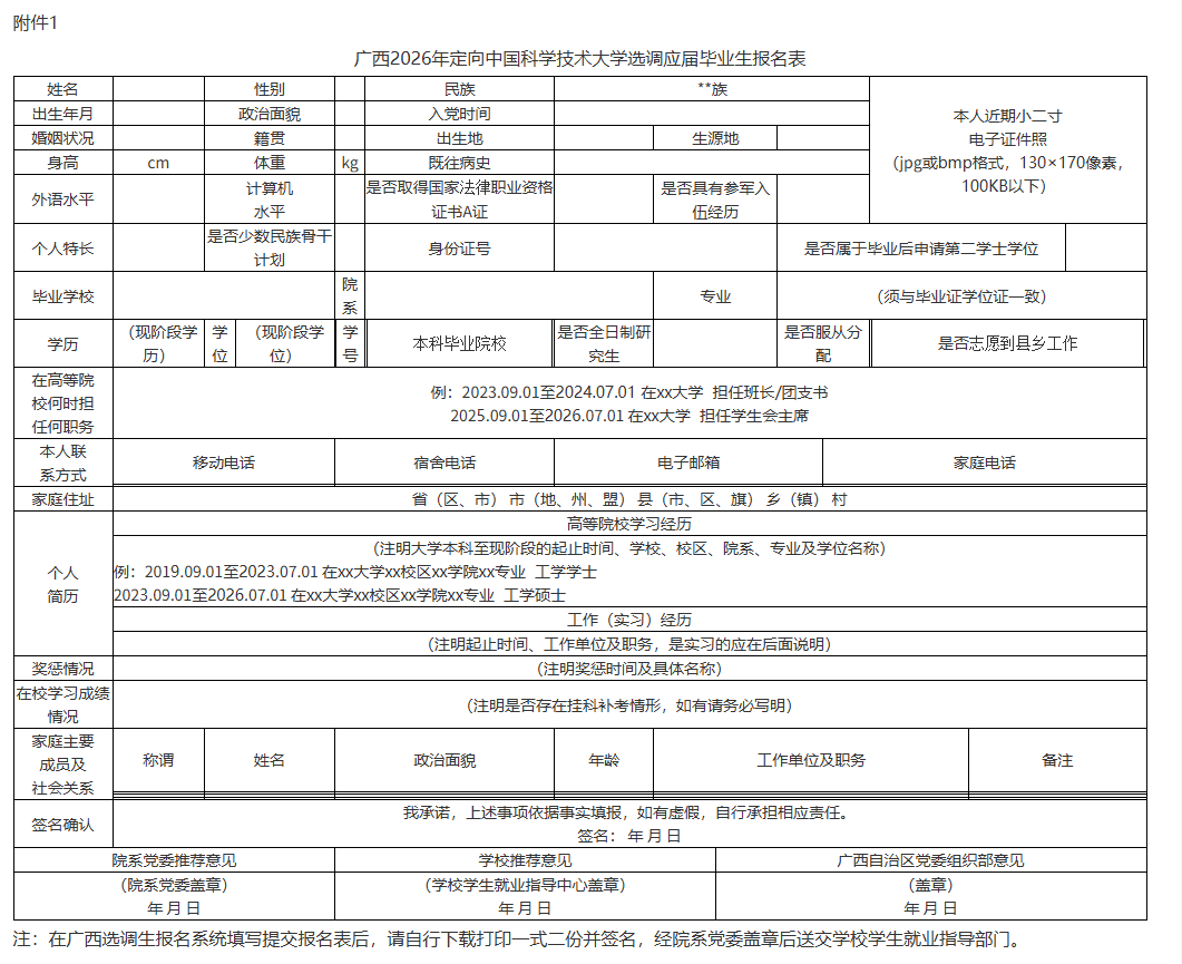 为加强广西高素质专业化干部队伍建设,大力培养储备优秀年轻干部,根据中央组织部《关于进一步加强和改进选调生工作的意见》(组通字〔2018〕17号)要求,广西决定面向中国科学技术大学选调一批2026年优秀毕业生到党政机关工作。现将有关事项公告如下。