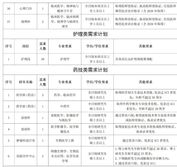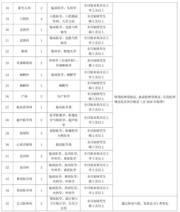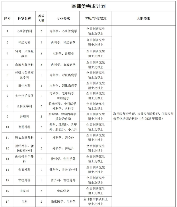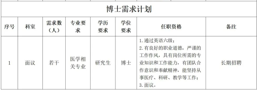 3.临床医学、精神医学、精神病与精神卫生学等专业全日制本科及以上学历毕业,规培方向为精神卫生方向;临床医学、临床病理学(病理学与病理生理学)等专业全日制本及以上学历毕业,规培方向为病理方向的。取得医师资格证、医师执业证及规培合格证;经试用期考核合格,独立当班后,分2-3年发放安家费8万元。