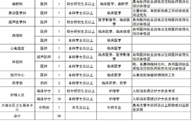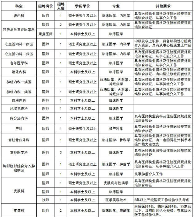 具有中华人民共和国国籍,遵纪守法,身心健康,热爱医疗卫生事业,有较强的责任心,无不良嗜好,工作积极肯干,能吃苦耐劳,服从医院工作安排,具有良好的团队合作精神,